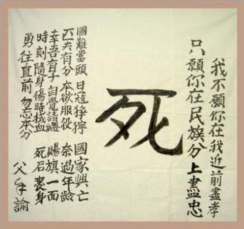5、大名鼎鼎的“死字旗”四川,请缨出征的王建堂,得到父亲王者成的嘱托,竟然是一面“死字旗”:白布正中写了个大大的“死”字!“死”字右边写着:“我不愿你在我近前尽孝,只愿你在民族分上尽忠。”