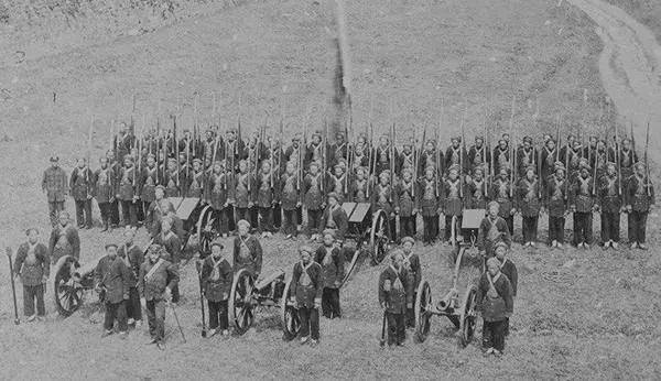 看中排第一个的眼神,让人害怕,不知他以后是否成了一个将领,看那眼神似乎应该成为了长官,也许也用自己的枪杀过不少洋人吧。但是后排能看清脸的几个士兵就略显青涩了,应该是刚入伍的吧。