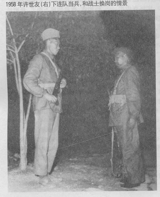在连队,许世友和年轻的战士们一起出操、训练、站岗、放哨,并且抢着打扫卫生。机关的一位工作人员赶来为许世友照相,许世友挥挥手说,人民公社五六十岁的老社员,一天干到晚,也没有人替他照相,我干了一点活,就要照相,你们这些同志呀,是干什么的嘛!
