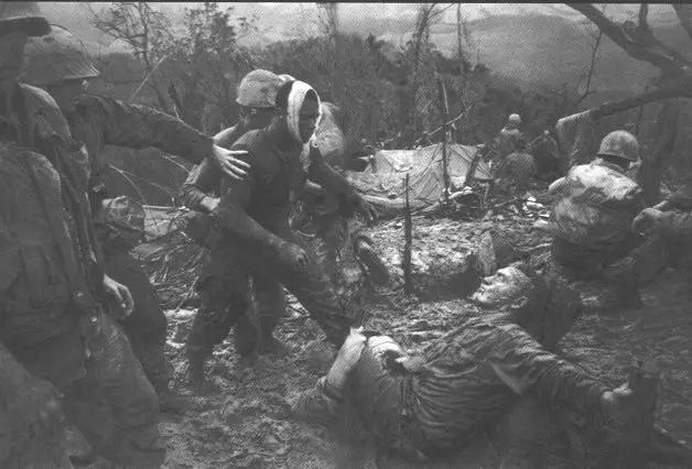 无论在那个国家,无论是侵略军队还是反抗侵略的军队,战友之间的感情是最深厚和真挚的。一个头部和膝盖都已经受伤的美国士兵,在战友的帮助下来到一个救护站。他虽然已经身受重伤,但却急忙赶去救助一位伤势更加严重的战友。