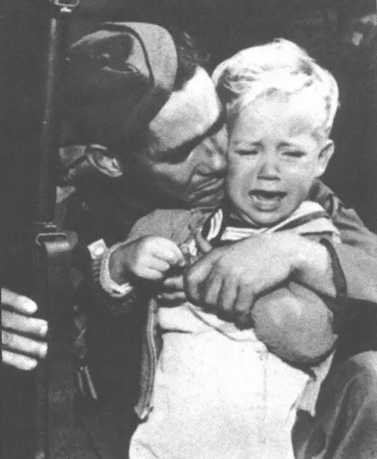 二战期间的美国,一位正要赶赴前线的士兵安慰着哭闹不停的小儿子,美国参战之后,许多家庭面临着离别的悲伤。