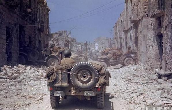 照片拍摄于1944年5月,记录了当时盟军部队与德军部队的血战,经过惨烈的战斗,当地的居民楼成为了破壁残垣,盟军士兵们取得胜利之后,脸上露出了久违的笑容,我们来看看: