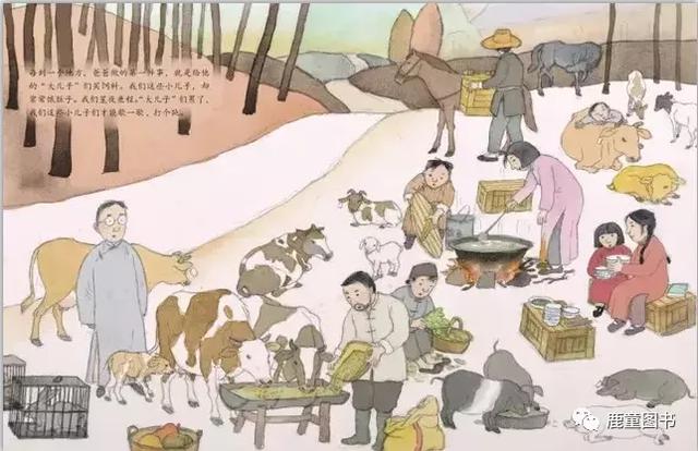 80多年后的今天,鹿童图书为我们做了一件大好事,将王酉亭的故事以绘本的形式再现了。这部名为《大儿子小儿子》的绘本是由军旅作家张鹰根据上面的故事创作的文本,由获得中国第一位博洛尼亚插画奖得主王祖民绘画,这部绘本获得了书香中国原创200榜单,并在中国绘本展展出。