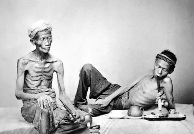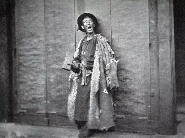 对着镜头伸手乞讨的爷孙俩,清末战乱不断,民不聊生。各省时常出现灾荒,落后的小农经济对灾荒毫无抵抗,加上清政府赈灾不力,大批灾民沦落成乞丐!