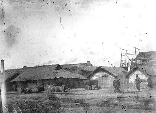 清末的民居,照片中的这些房子虽然是茅草房,但在当时都算是不错的了。当时许多农村的房子又小又破,农民也是时饱时饥。