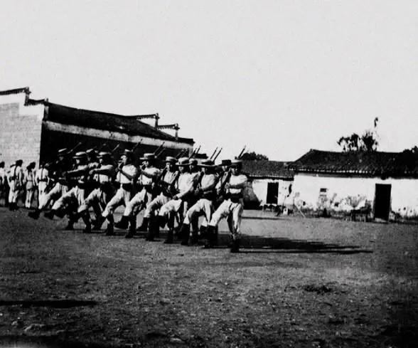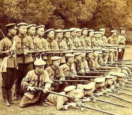 1895年即由胡芬募集了五千人,称为“武定军”,这便是新军的前身,也是清末最早组建的近代化陆军。新军的整训,后以袁世凯的小站练兵达到鼎盛。图为新军在军营里出操。