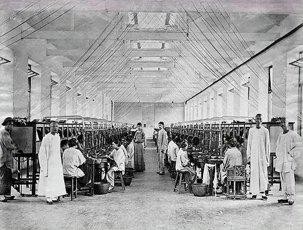 上海,某棉纱厂内景 。照片大约拍于1870年代
