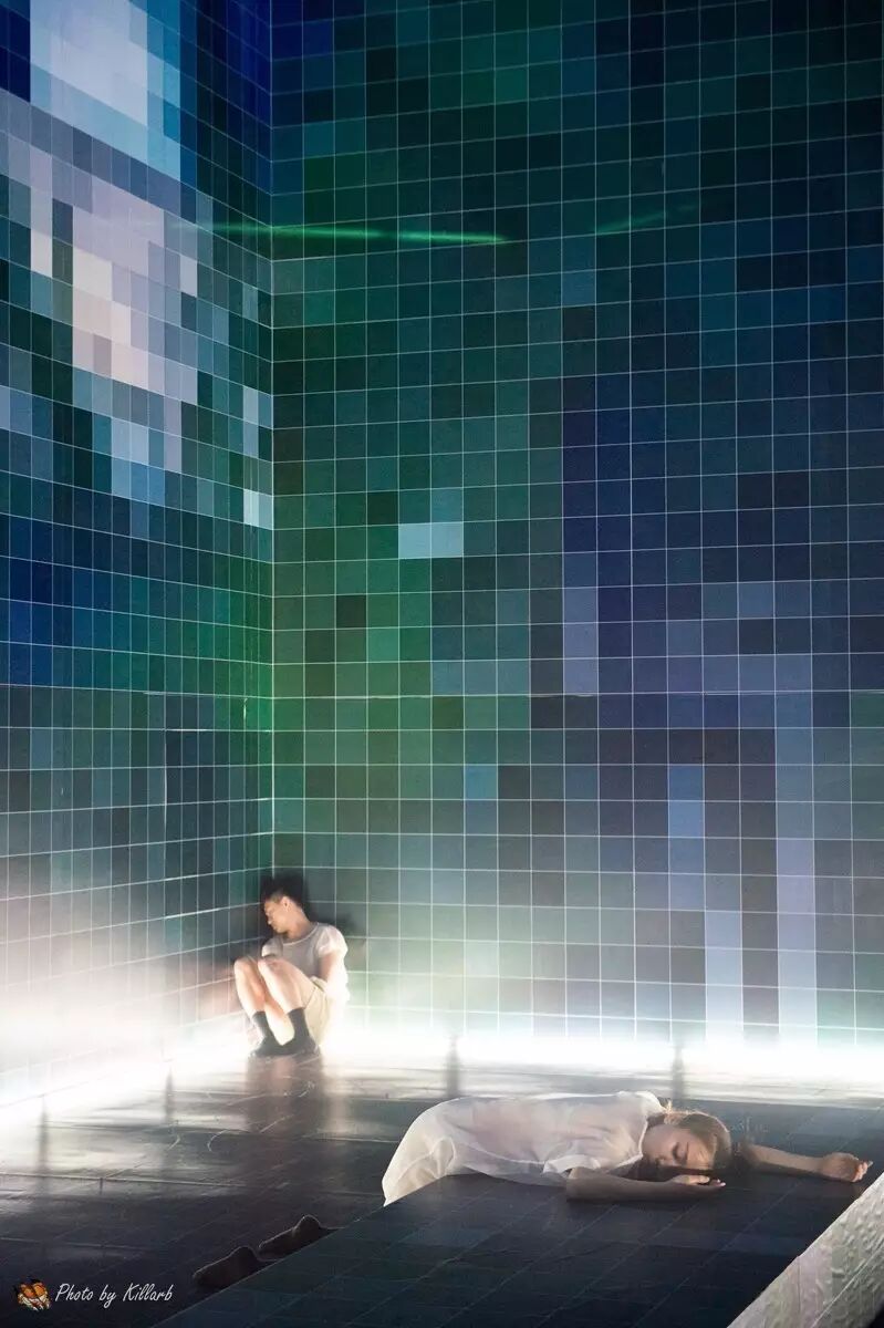 其实参与这一次的演出,我最大的收获不是身体上的变化,而是情绪上的释放。我特别喜欢整个空间带给我的感觉,我仿佛置身于一个新的意识世界中。我觉得照片是记录生活瞬间的一种方式,而组成相片恰恰就是像素,如果说相片是我们的一条记忆,那么像素就是记忆的碎片,而打破记忆形成碎片,最有力的情绪就是混乱。而我表演的这一部分就是混乱,失控,爆发的情绪综合。我在整个表演中,像一个疯子一样,不停地奔跑,不停地飞跃,不停地冲撞,不停地旋转。我痛苦,我疲惫,我挣扎,我恐惧,我释放,我不停地向着记忆主体冲击,也不停地冲撞整个记忆之所,我想要冲破这里。仿佛我在混乱,我在失控的瞬间,不再是碎片,我渐渐被光形成了一个人,成了记忆,仿佛冲破这里,我就释放了,但这是不可能的。我被狠狠地弹了回来,变回碎片。最终主体拾回了已经被撞得面目全非的我,带着我的身体,又回到了记忆之所的最初处。