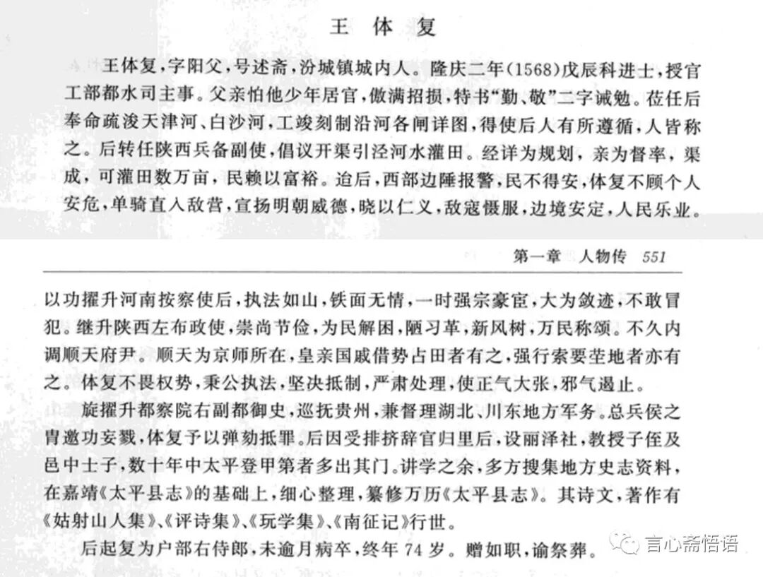 重磅:发现襄汾汾城明代进士王体复重要资料