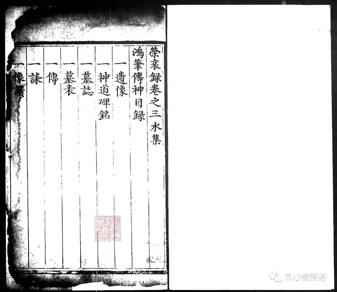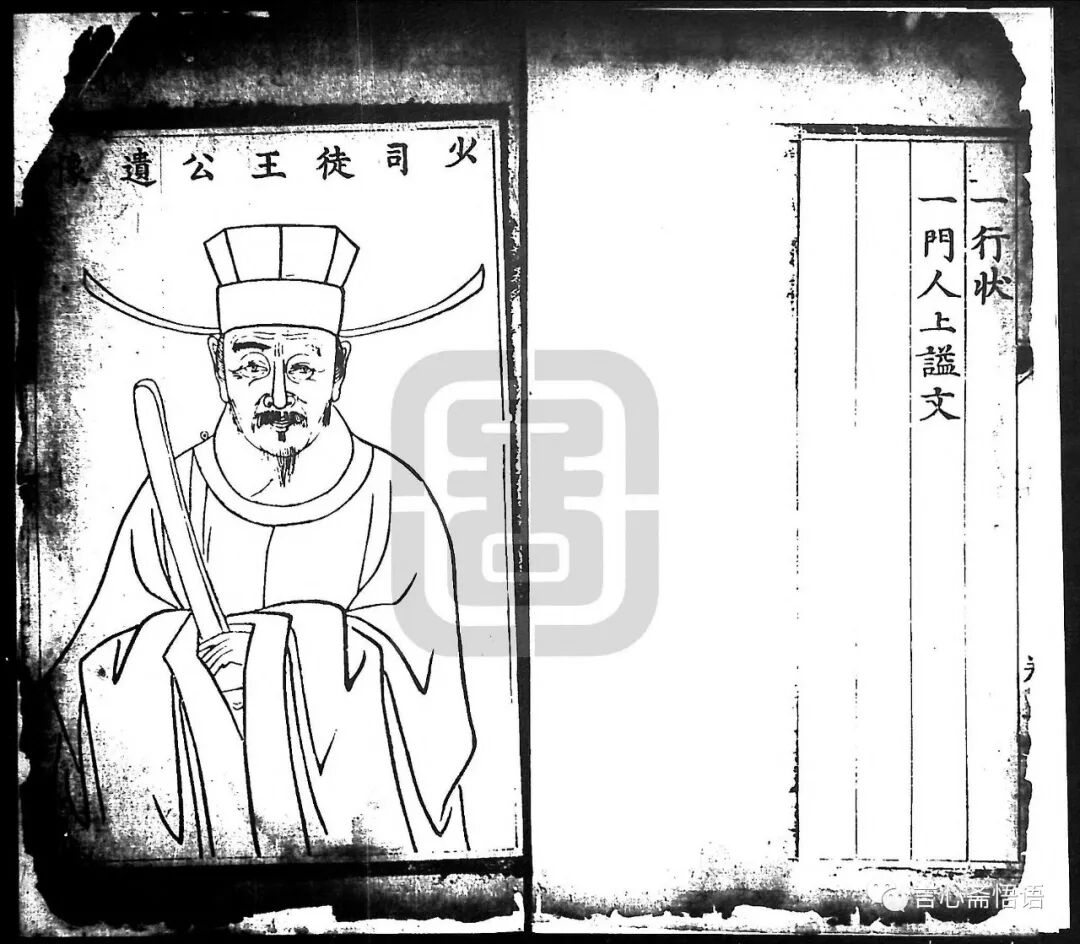 又在国图上的中华古籍资源库里搜,输入王体复,没有结果,后来试着用王氏的字述斋搜了一下,忽然有个东西跳入眼帘,名曰:《少司徒述齋王公榮哀錄》,打开一看,里头虽然只残存有一卷,却收有王氏的遗像、墓志铭、神道碑、墓表、传记等资料,真是难得。少司徒,即户部侍郎,是户部的副长官,协助尚书主管全国的财政监督、民政事务,王体复生前做过不到一个月的户部右侍郎。词典显示,荣哀一词出自《论语•子张》:「其生也荣,其死也哀。」后以「荣哀」为赞颂死者的套语。按这意思,荣哀录就是记录死者生前光荣事迹和其死后人们的哀悼文章的资料集。