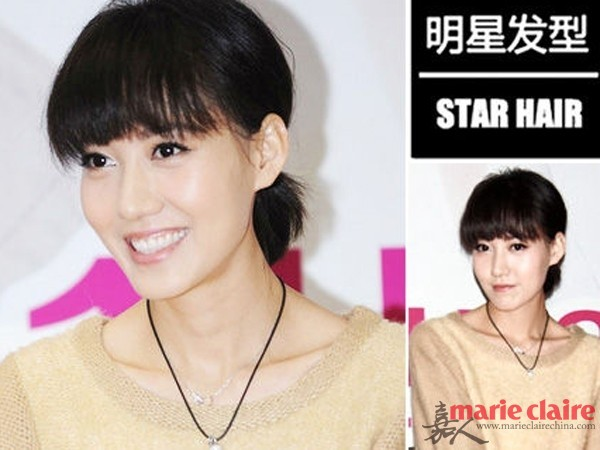 齐刘海马尾相信大家看过很多,姚笛的这个发型,没有过多的修饰,却给我们带来了不一样的美。