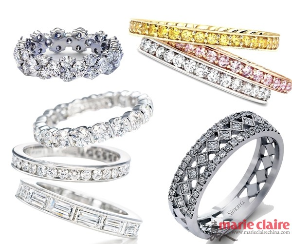 一款婚戒对于女人来说,不单单只是璀璨耀眼而已,它更象征着将自己的幸福终身托付那个他,戒指便是婚姻的见证物。如果你觉得一颗硕大钻石的戒指,过于高调夺目,那么多钻镶嵌的钻石婚戒,便是你的最佳选择。虽然钻石镶嵌整个指环,但以秘籍的小钻排列,同样精致迷人。这样的款式都可单独佩戴,也可与其它戒指共同佩戴,引人注目的外观在诉说爱的故事,无论是当下还是永恒,它们完美地象征着圆满的幸福。