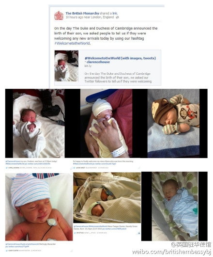 随后,英国王室在Twitter上发起了一个有爱的活动,让家有新生儿的用户上传他们的宝宝照片。而此活动所使用的标签是:“#欢迎来到这个世界#”(Welcome to the World)