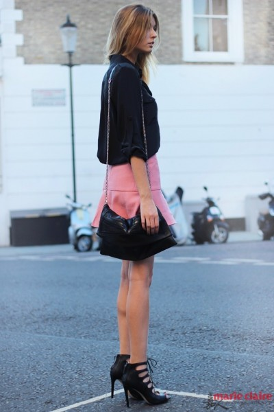 穿这种单品重要的是掌握好比例,当裙摆如此夸张时上半身就尽量收身,露出你的小蛮腰自然看起来变瘦一圈,当然如果你有大长腿,还可以用及踝凉鞋来和半裙搭配,淡化高跟鞋带来的“公主感”,及踝凉鞋看起来会更加欧美范儿。