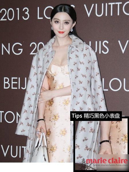 作为LV代言人,范爷自然要捧场LV北京精品店开幕。这次范小胖依然走自己的气场强大的复古路线,碎花长裙加碎花大衣,村干部式穿法颇有女王气势。至于腕表,范爷选择的是小巧的黑色腕表,正好符合她的复古造型,不过整体看起来范爷这次的造型稍嫌凹过头。