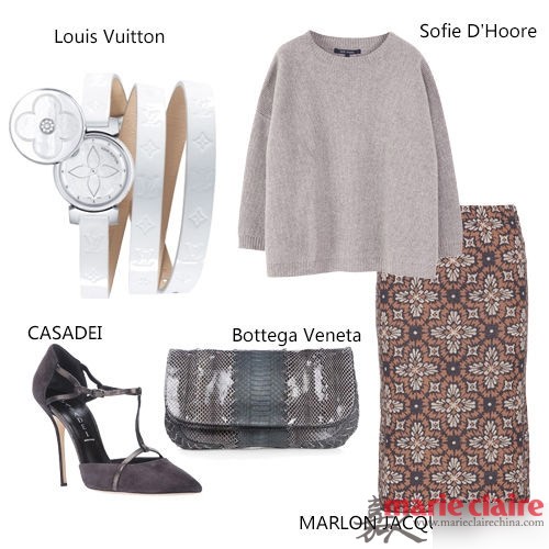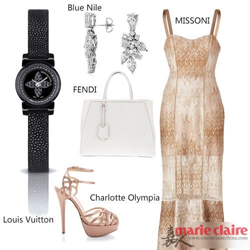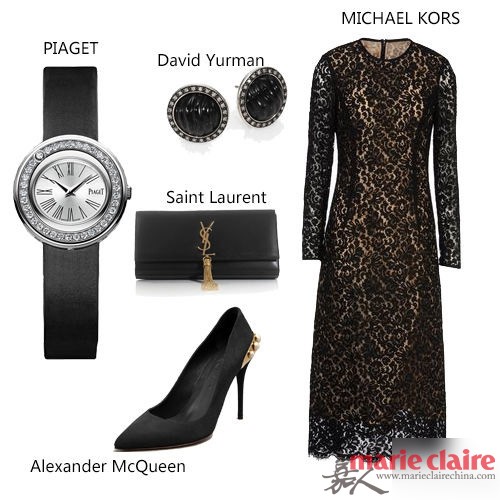 2013秋冬系列外套,露出裸色蕾丝花边,性感指数顿时飙升。这身优雅的造型正好搭配白色腕表,诱惑之中多了几分清新丽质。