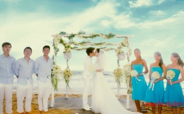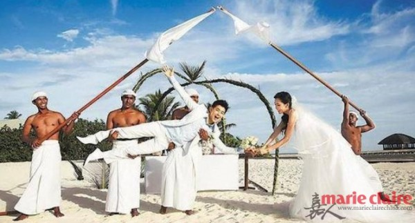 林志颖透过经纪人公在马尔代夫拍摄的婚纱照,其中四张婚纱照中,林志颖和妻子陈若仪登上古船拍摄,更摆出《泰坦尼克号》中的船头经典动作。此外,林志颖也公布了婚礼的细节,婚礼在泰国夕阳美景海边进行,采用西式、泰式合璧,儿子Kimi及曹格的女儿都有份担任花童。