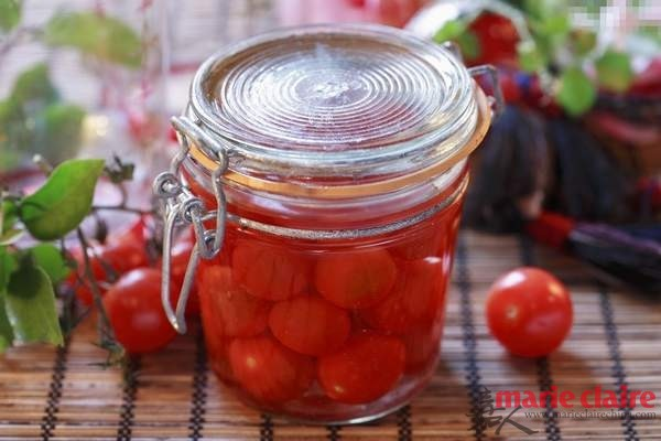 把刚刚做好的酱料装在一个罐子里,然后放进去三个已经切块的西红柿,然后放进冰箱里冷冻4个小时。