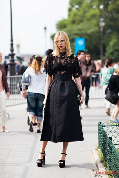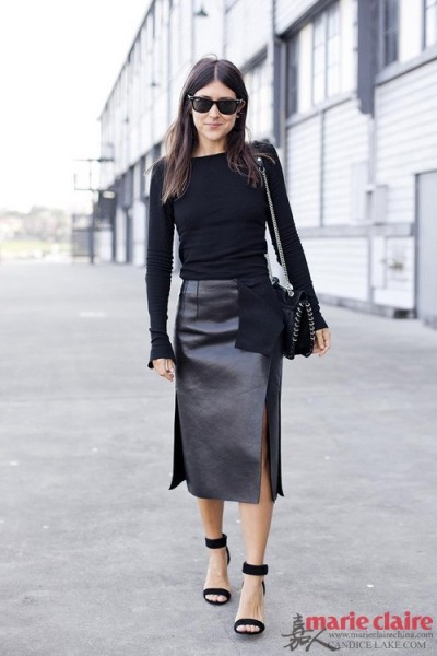 都说黑色在夏天更容易吸收太阳光,但是对于专业的时装精来说,这点热度还是能够忍受的,夏天穿一身黑并没有什么不可以,但是你要露出该露的地方,比如利用短上衣露小蛮腰,用高开衩露大腿,用蕾丝和透视露更多,掌握这样的露肤比例,即使黑色看起来也并不那么过分 ,编辑为你精选20个街拍LOOK,那些无黑色不欢的你们,快些学起来吧!