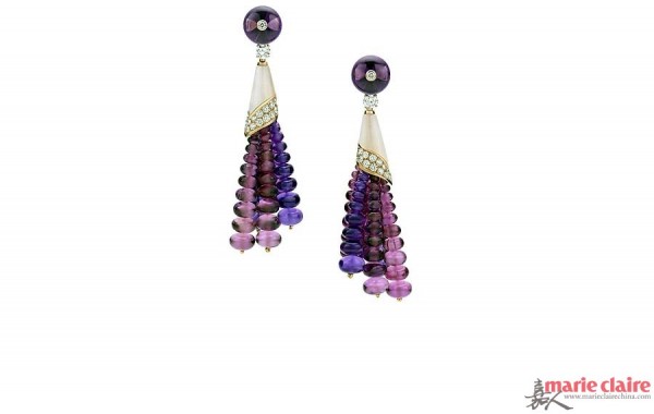 舞会,华服,珠宝,爵士乐,花天酒地,纸醉金迷,没错,这就是20世纪20年代人们的生活,一个华丽又迷惑的年代。摇曳的流苏,无疑是这个年代最具风格的珠宝单品,随着音乐的摇摆,让女人舞动中散发着迷人姿态。摆摆荡荡的细节,既能体现珠宝高超的制作工艺,又能随身姿展现不同的美感,纯粹装饰的线条与流光溢彩的珠宝结合,呈现出独有的奢华、优雅,流苏元素珠宝是对“黄金20年代”的最好致敬,好像爵士乐一般,让你随着音乐一同舞动。现在就和编辑一同时光倒退,感受一下流苏珠宝的摇摆风情吧。
