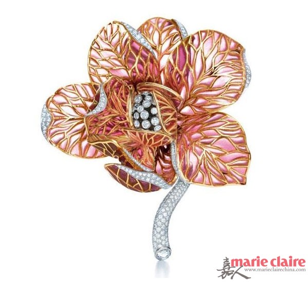 “永不凋谢”的花朵 绽放于胸前的钻石胸针