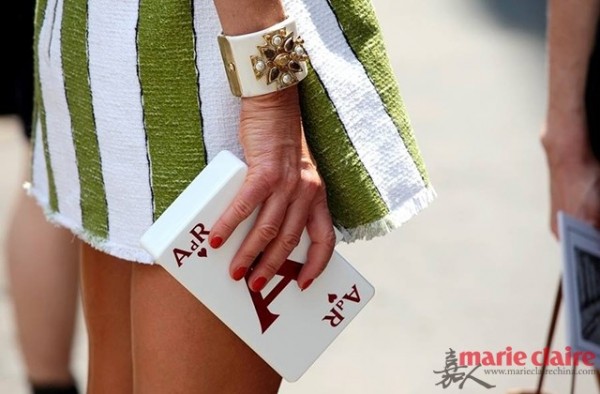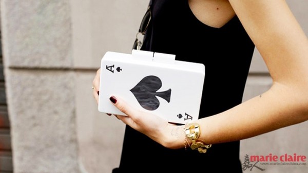扑克牌样的手包 街拍玩趣时尚你敢挑战吗?