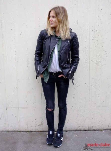 早秋必学搭配 皮革最好配牛仔