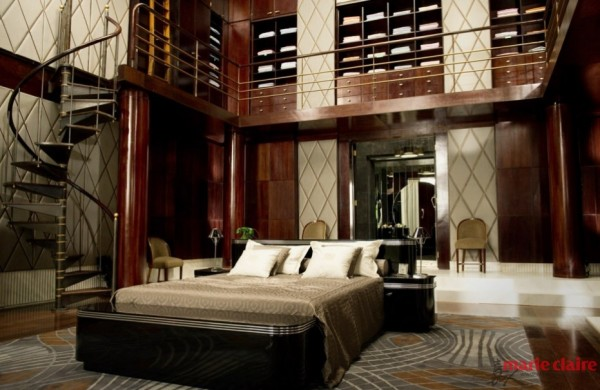 http://img.itc.cn/photo/j0sZ7aLuDI4卧室的设计与大厅的气派截然不同,有更多的现代主义元素。而床下面这张艺术装饰(Art Deco)风格的毯子便是