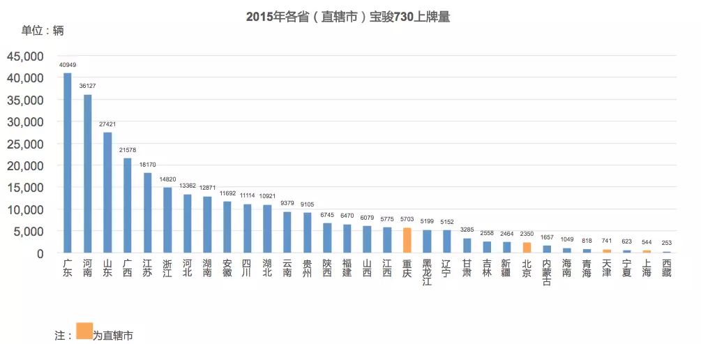 这次我们没有逐一去分析上汽通用五菱每款产品的销售流向,主要分析宝骏品牌的三款热销车型:730、560和630,从三款车型销售排名来看,广东、河南、山东都是销售前三的省份,但其中也略有差异,730广东省第一名,560和630的冠军省份却是山东省,从这一上牌量的销量统计中我们可以清晰地看到宝骏品牌的车到底卖到哪里去了,如果我们再进一步细化去分析到地级市和县级市的话,宝骏品牌的销量分布将更加的精准,限于篇幅,本文没有做进一步销量分布分析,有兴趣的话可以私信本公众号。