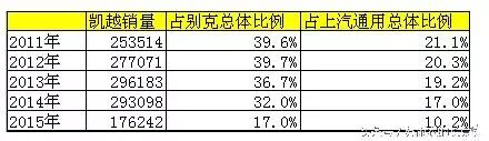 据乘联会数据,2011-2013年,凯越销量一直保持上升。但自2014年开始,凯越销量出现小幅下滑,而凯越占别克总体销量的比例也开始出现下降。2015年,凯越销量为176242,占别克总体比例进一步跌至17%。在中国车市增长趋缓的大背景下,别克品牌仍然高歌猛进,得益于英朗的发力,以及昂科威的迅速崛起,凯越的作用无形之中有所降低。