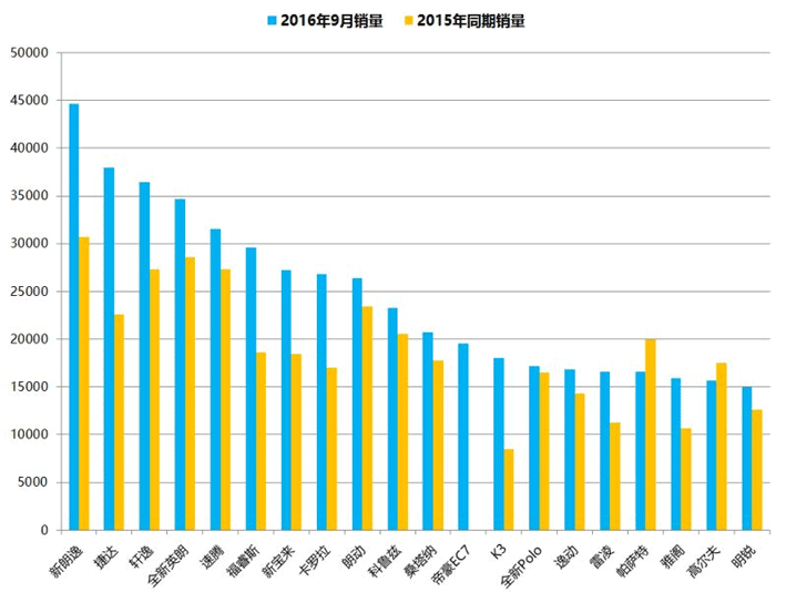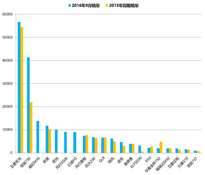 2016年9月中国汽车品牌销售排名