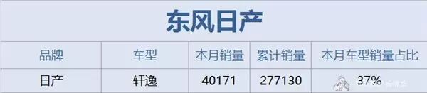 10月,东风日产轩逸销售40171辆。从销量上来看,任何月销达到4万的车型绝对可以算得上是爆款车型。在10月销量排行榜上,轿车车型中仅有新朗逸可以迈过月销4万门槛。不仅如此,东风日产轩逸10月销量占东风日产整体销量份额高达37%。