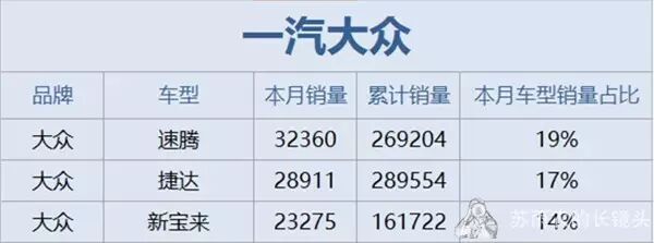 一汽大众的销售结构非常有意思,主销车型排名前3名的分别是,速腾、捷达、新宝来。由于旗下没有SUV,一汽大众仅依靠轿车产品打天下。