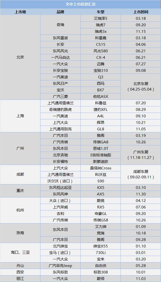 10月26日)、吉利帝豪GL(9月20日)、上汽荣威RX5(7月6日)、大众全新蔚揽(4月12日)均选择在杭州上市。
