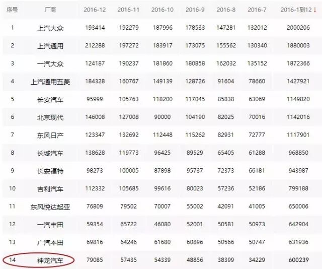 据数据显示,2016年国内乘用车市场总量2194万,同比增长18%。神龙公司2016年市占率不仅减少了1.06%,行业排名第14位,较上年也下降5位。不仅如此,神龙公司在东风汽车内部也面临着巨大压力。2016年,神龙公司销量60.02万车, 较2015年70.48万辆全年销量相比,下降14.77%,并成为东风汽车各子公司中销量下跌最多的企业。神龙公司在东风汽车子公司体系内销量排名也由2015年第2名下跌至第3名。