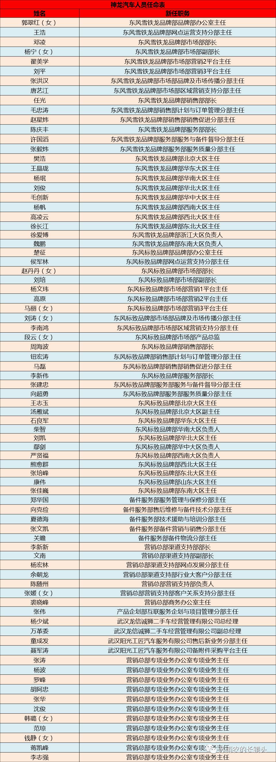 除组织变革外,神龙汽车此次商务领域组织调整也涉及了大量的人事任免。