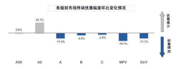 与此同时,A级细分市场的GAIN·5月A级别终端优惠指数为-2.25,环比下降11.4%,自今年1月份以来连续第4个月下降,已接近去年同期。本月该级别优惠指数下降主要是受到权重车型威朗优惠增加的影响,同时日产阳光也出现较大幅度的优惠。