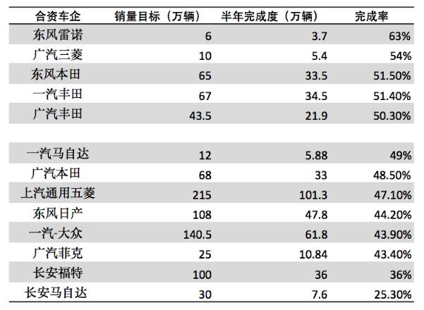 总体而言,自主品牌半年目标完成率非常低。我们抛开整体环境处在“政策市”的因素,从销量、年初目标和比率的关系中可以发现,大部分车企的增速百分比十分漂亮,可落实在完成度上,仍未能超过50%。