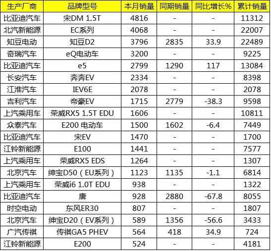 比亚迪一骑绝尘 北汽新能源、上汽乘用双星闪耀