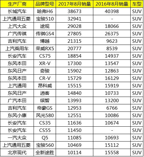 SUV领域一直是自主品牌的优势细分市场。但除吉利、上汽乘用车外,部分自主品牌在SUV领域则出现了疲态。以长城汽车为例,哈弗H6、哈弗H2等产品曾经帮助长城在SUV领域取得骄人战绩。但从8月的数据来看,哈弗H6销量优势明显缩减。哈弗H2销量也有较大下降。8月,哈弗H6销售38673辆,仅领先第二名不足6000辆。此外,长城另一款产品哈弗H2则真接滑出了SUV销量前20名。