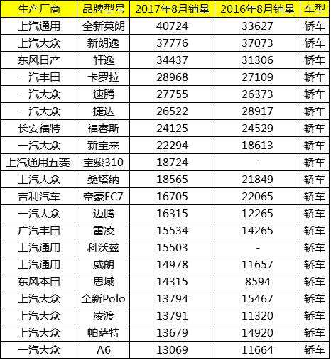 从8月轿车销量整体格局来看,8月销量整体可以概括为,美系提升,德系守成,日系下滑,自主边缘四句话。美系产品依靠全新英朗、科沃兹、福睿斯销量提升,获得了销量增长。德系产品整体有小幅增长,但相对于整体销量而言,增幅微小。日系产品则因轩逸、卡罗拉、思域销量整体较上月均有所减少,整体表现一般。自主品牌则仍仅有帝豪EC7、宝骏310两款产品进榜。