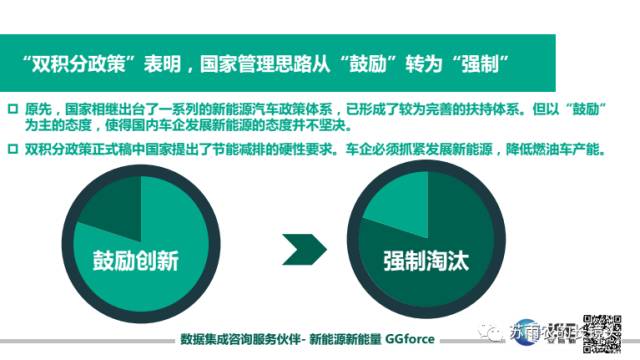 9月28日,工信部、财政部、商务部、海关总署、质检总局联合发布了《乘用车企业平均燃料消耗量与新能源汽车积分并行管理办法》(即近日备受瞩目的“双积分政策”)。众所周知,新能源汽车的发展与走向与各种政策的颁布密切相关。此前,国家在新能源汽车方面政策多以鼓励为主,而2018年4月1日双积分政策的正式落实,则表明国家对新能源车辆的管理向强制化转变的态度,这将对车企本身的发展与生存起到至关重要的影响。