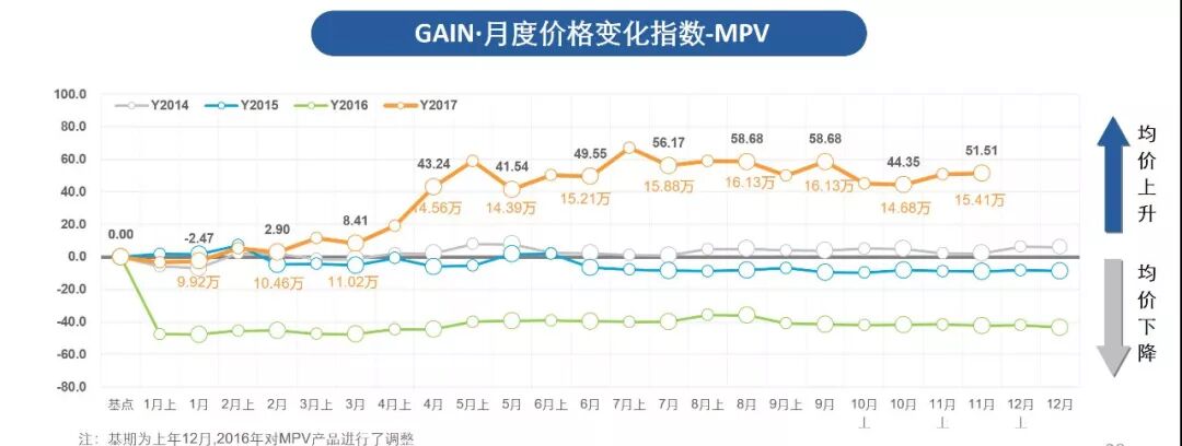 所以,2017 GAIN·11月MPV市场价格变化指数为51.51,环比上升5.0%。