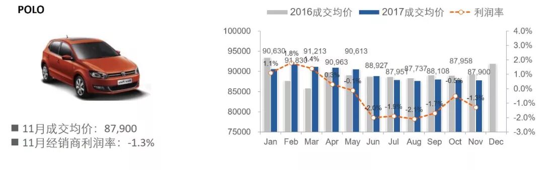 事实上,在宝骏310的强攻之下,POLO、飞度们不得已选择降价之举,2017 GAIN·11月,A0级市场价格变化指数为-7.64,环比下降2.7%,市场均价从6.40万下降至6.22万,降幅为1800元。这已经是A0级细分市场成交价格连续2个月下降。