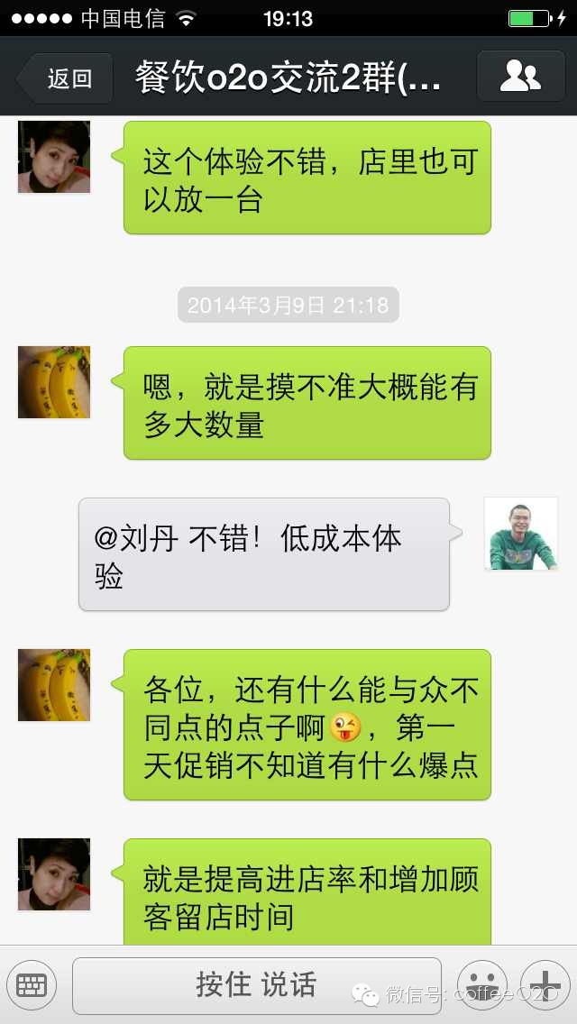 餐饮O2O交流微信群有众多餐饮实战大咖交流很火爆,现分享精彩话题: