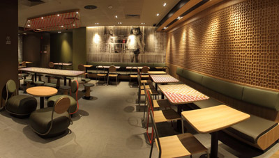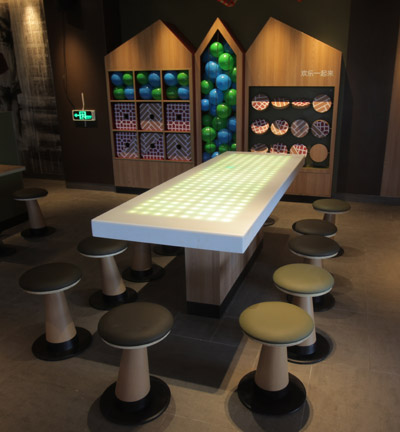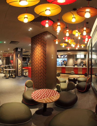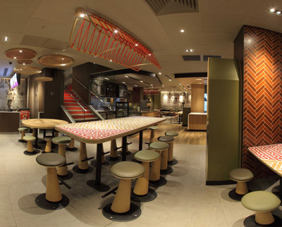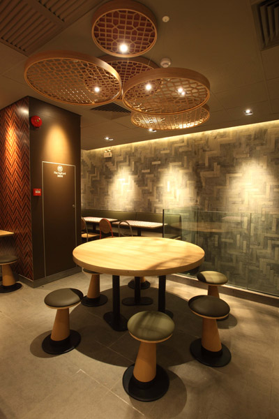 麦当劳中国还展示了最新旗舰餐厅设计。新的设计理念名为“EATERY”,将中国元素与麦当劳常用色彩结合。该设计概念在麦当劳系统中首开先河,并且专为中国的旗舰餐厅创造。