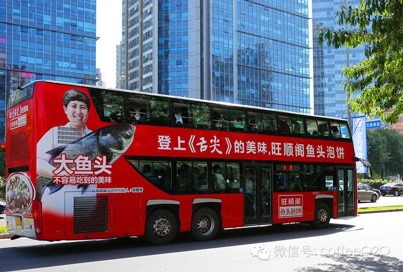 当得知《舌尖2》中会出现千岛湖大鱼头时,张雅青知道这是上天给她的第二次机会,她当机立断,砸下了旺顺阁自成立以来最大的一笔营销费。兵贵神速,4月底做的决定,5月10日,数十辆双层巴士带着“登上《舌尖》的美味,旺顺阁鱼头泡饼”广告语和极具视觉效果的女性抱鱼形象已经奔跑在三环、四环的马路上了。