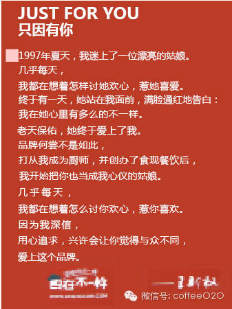 餐饮O2O(微信ID:coffeeo2o):中国餐饮业线上线下互动营销的圈子,每天分享餐饮案例、营销干货!用创新商业模式和互联网思维改良传统行业,是餐饮老板与从业人员必关注的公众平台。WeMedia联盟成员。