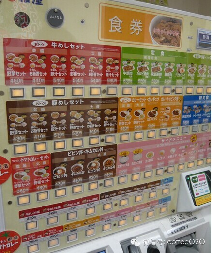 与吉野家门店遍布中国不同,日本才是松屋的主战场。在日本国内,松屋门店遍布,招牌显眼好认,点餐方式是使用贩卖机,一进门就可以直接在贩卖机上选择想要的产品,如果想要外带,右上方有个"便当"按钮给他按下去就对了。然后找好座位,店员就会过来帮你服务。