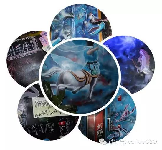 二、 仅仅这些怎么可能够呢?来看看餐厅更炫的感受,星座控的感受是不是更刺激?将刘总提供的照片,做了一个拼图,看来我也是一个星座控了——星座主题动画啊! 非常感谢鼎好集团总部的团队,竟然能够把星座的主题漫画也加入了星座主题餐厅的装饰中,融入了更多星座的正能量,梦幻般的感觉。